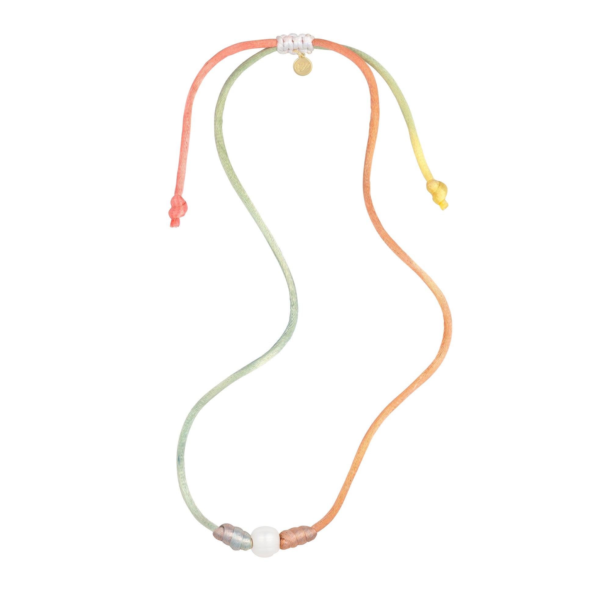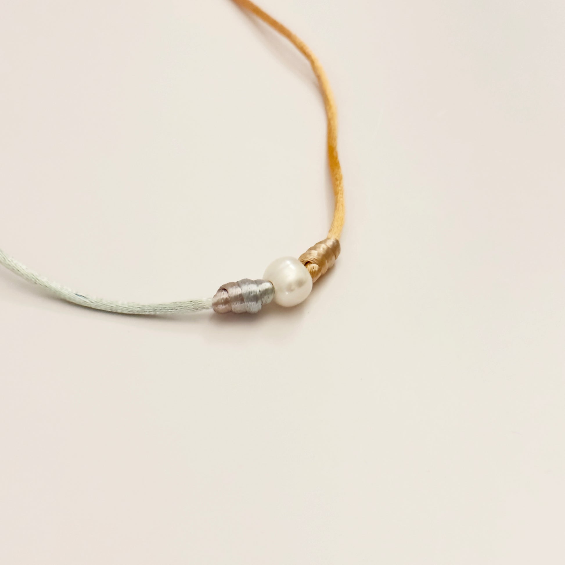 - Materials: Freshwater pearl, ombre satin rayon cord, satin nylon cord, gold plated component