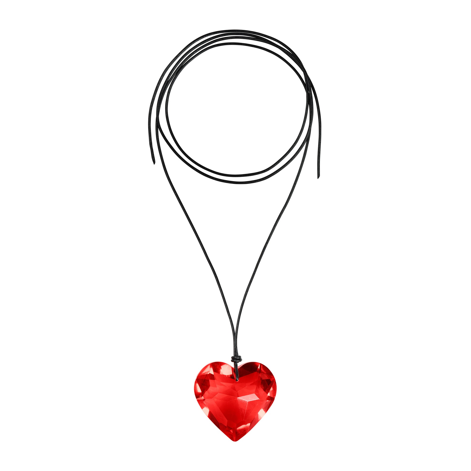 - Materials: Extra large faceted glass heart pendant, leather cord