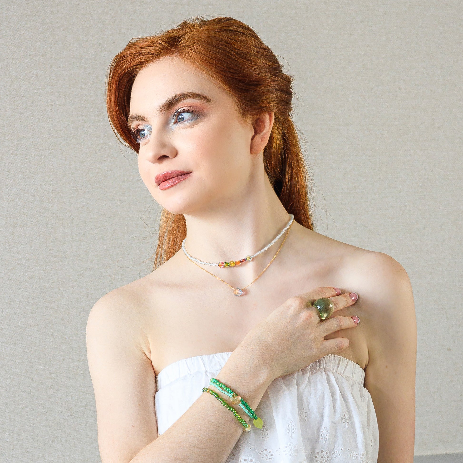 - A duo of gold-filled cable chain and glass seed beaded necklaces decorated with a shell charm and colorful letter beads to personalize with your name for the "Neri" style (please indicate the name in the "special instructions" section of shopping cart):