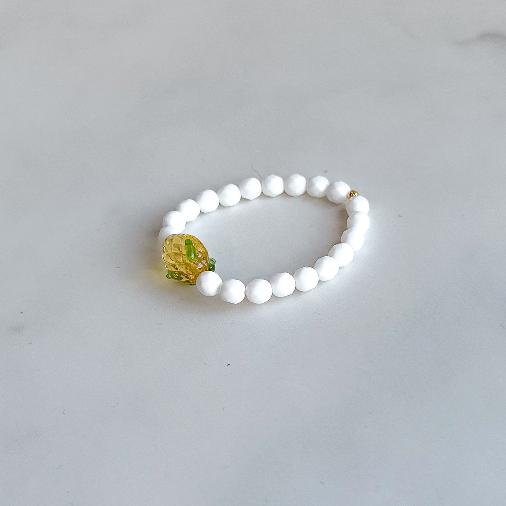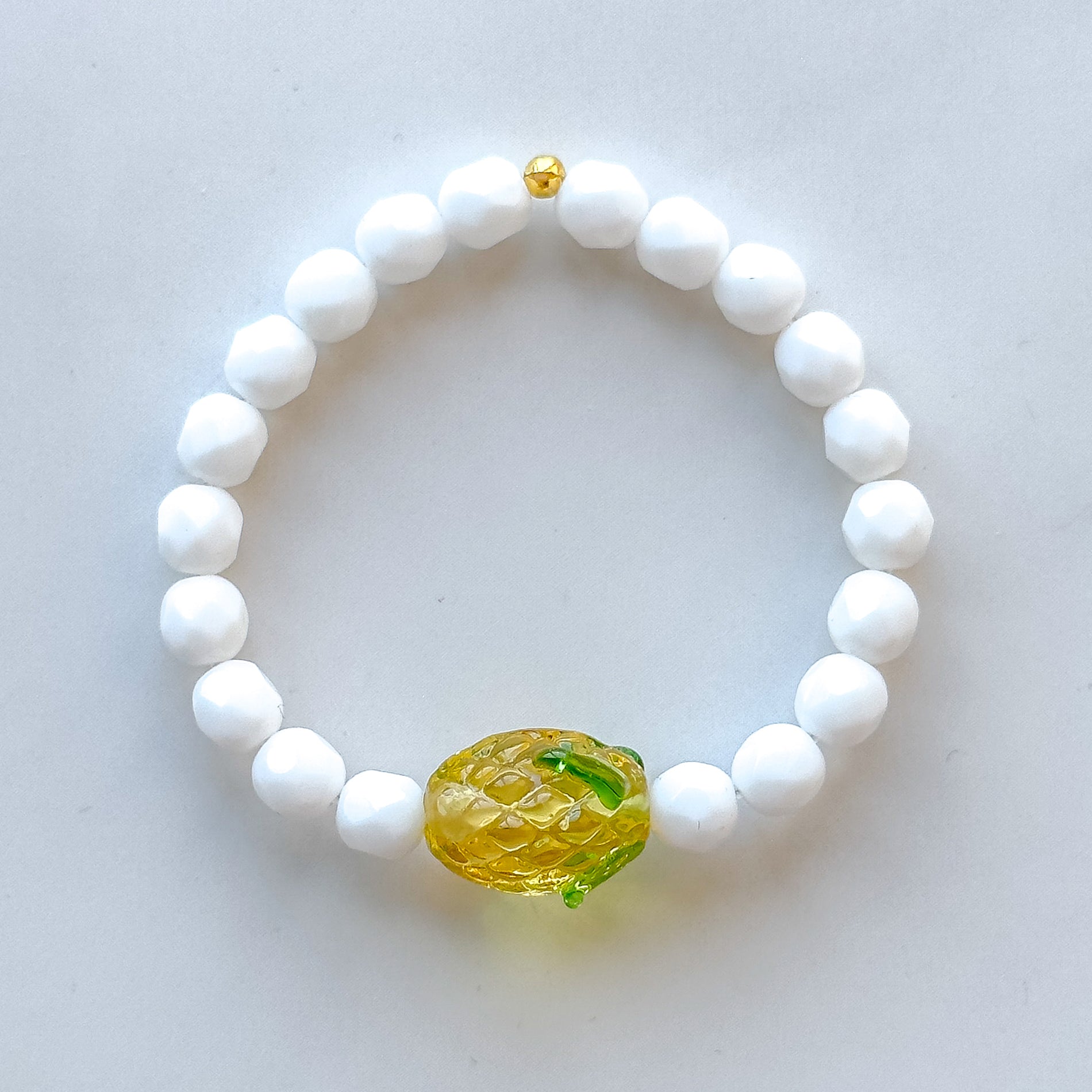 - Handmade stretch bracelet composed of faceted Czech glass beads, accented with a glass pineapple charm