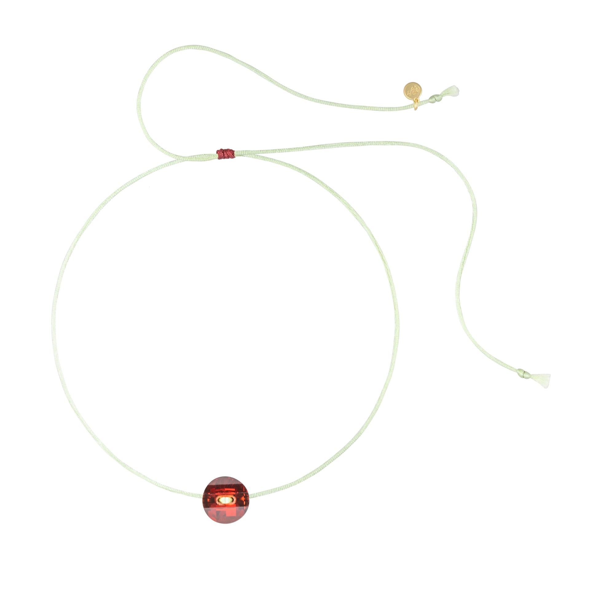- Materials: Vintage Swarovski crystal button, satin nylon cord, waxed polyester cord, gold plated component