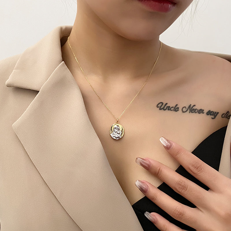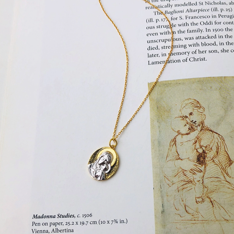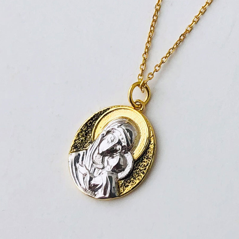 - 18K gold plated and antique Sterling Silver Holy Mary pendant necklace.