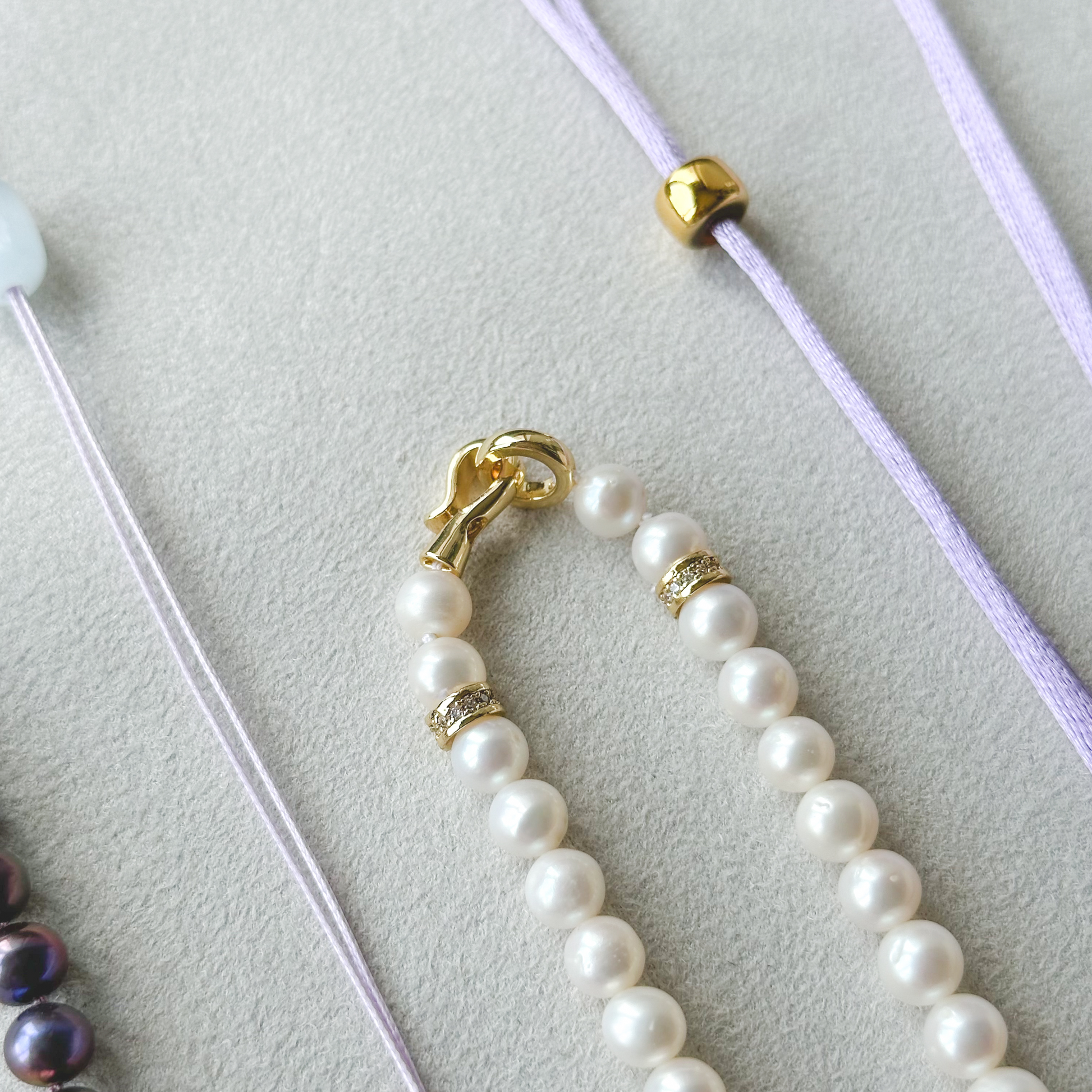 - Materials: Freshwater pearls, silk thread, gold plated brass cz wing charms and components