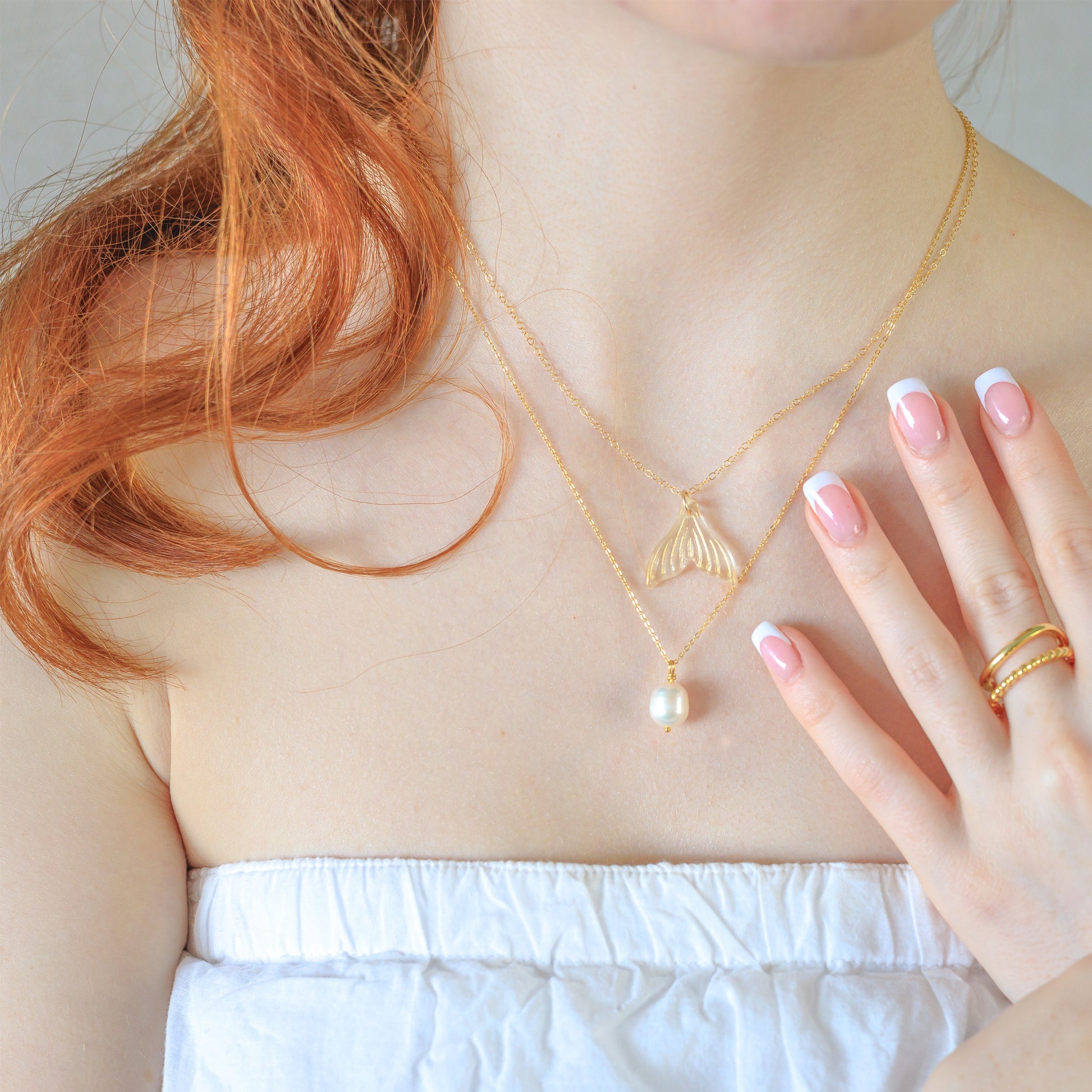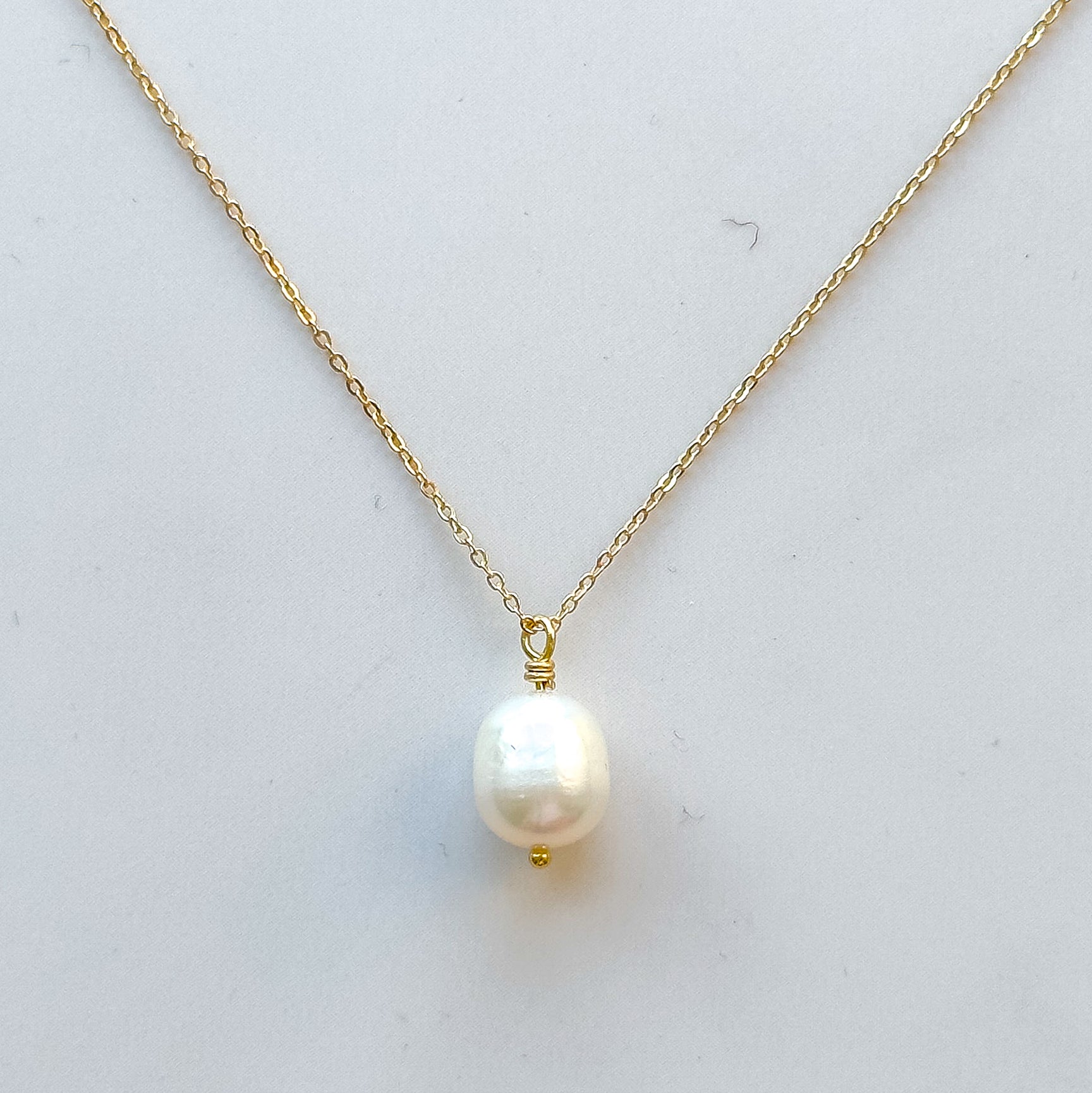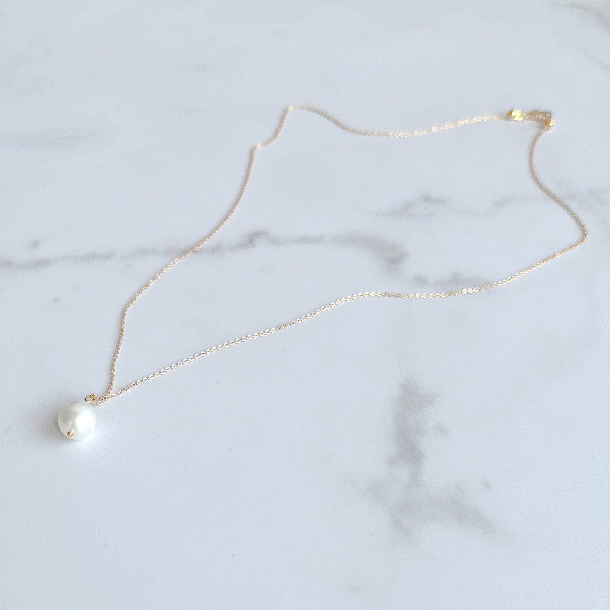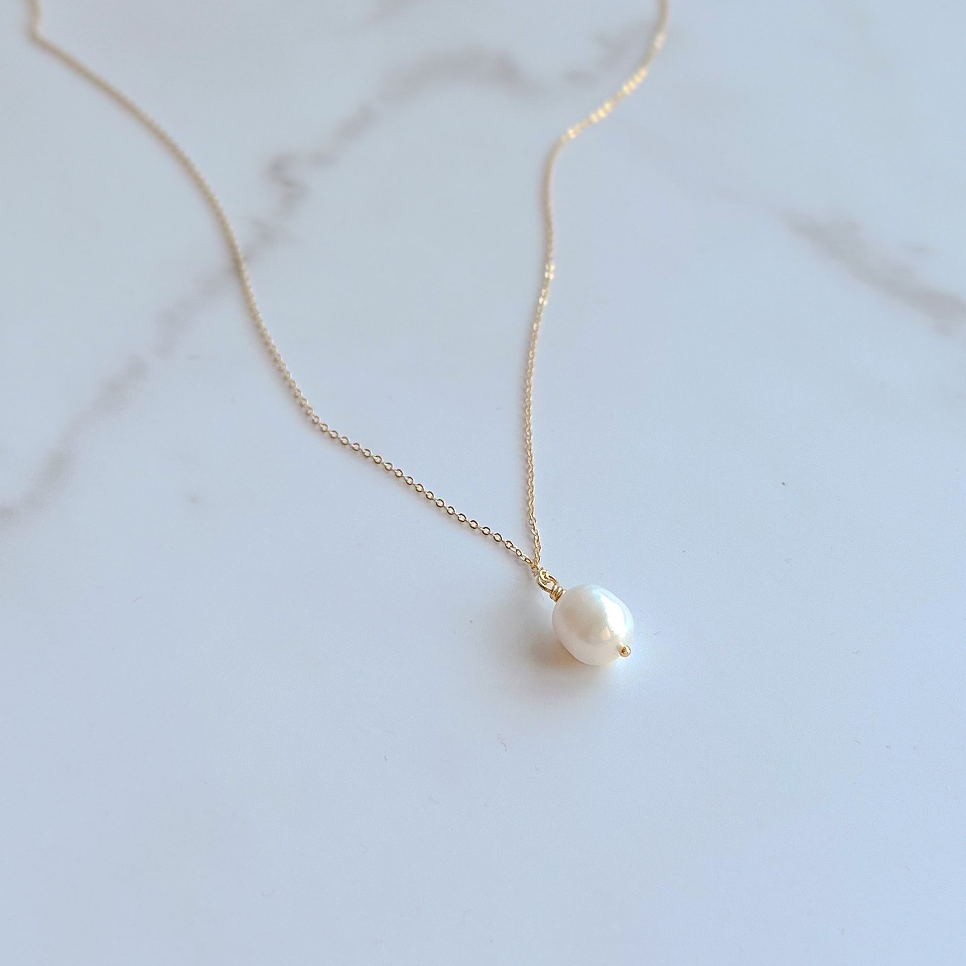 - Gold-filled cable chain necklace with a freshwater pearl charm