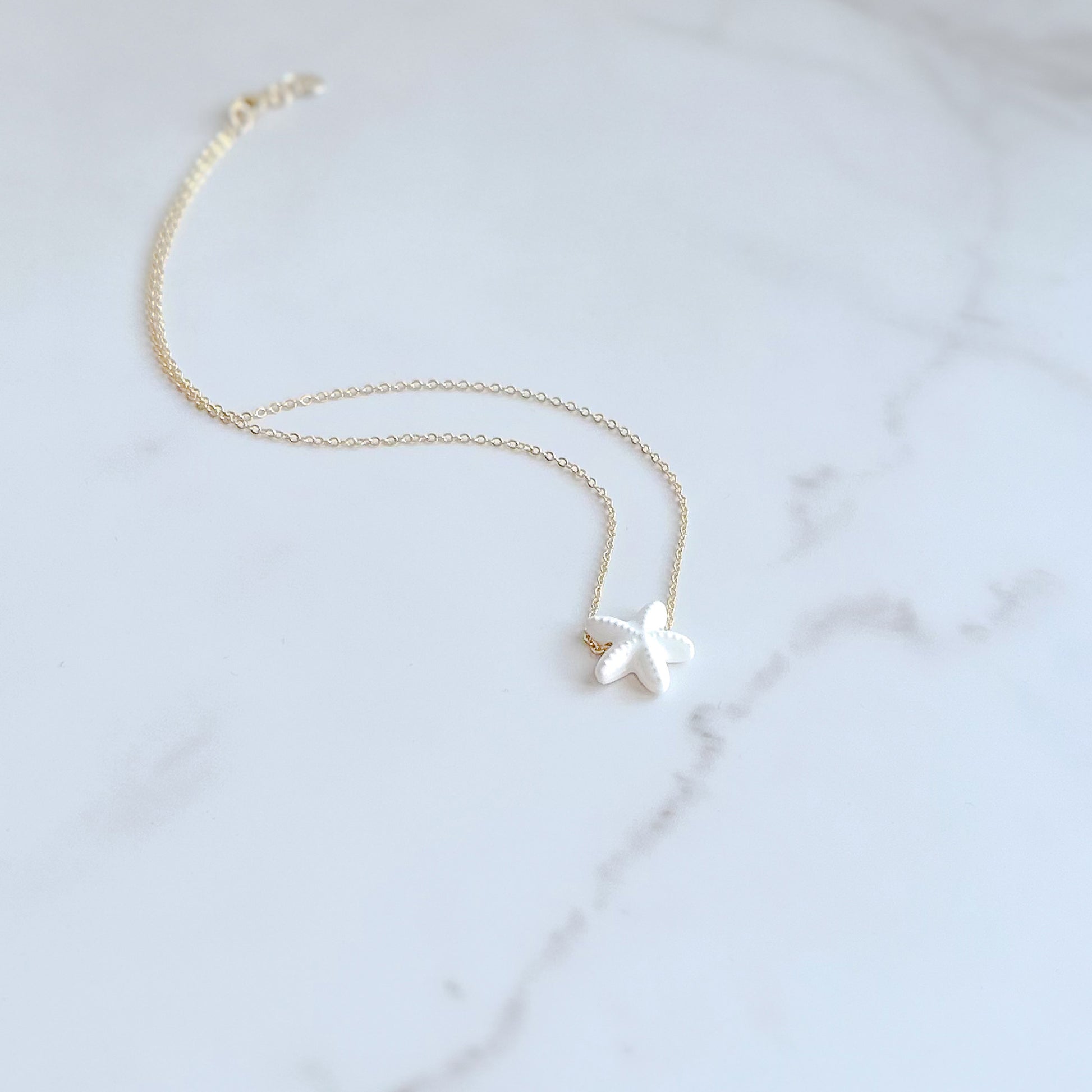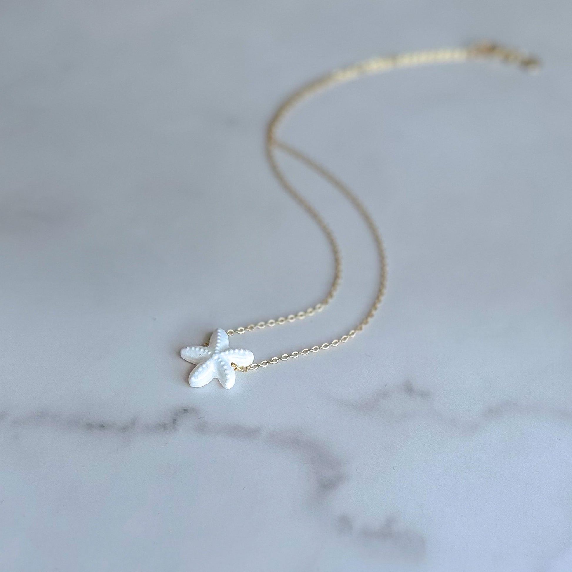 - Gold-filled cable chain necklace with a ceramic starfish charm