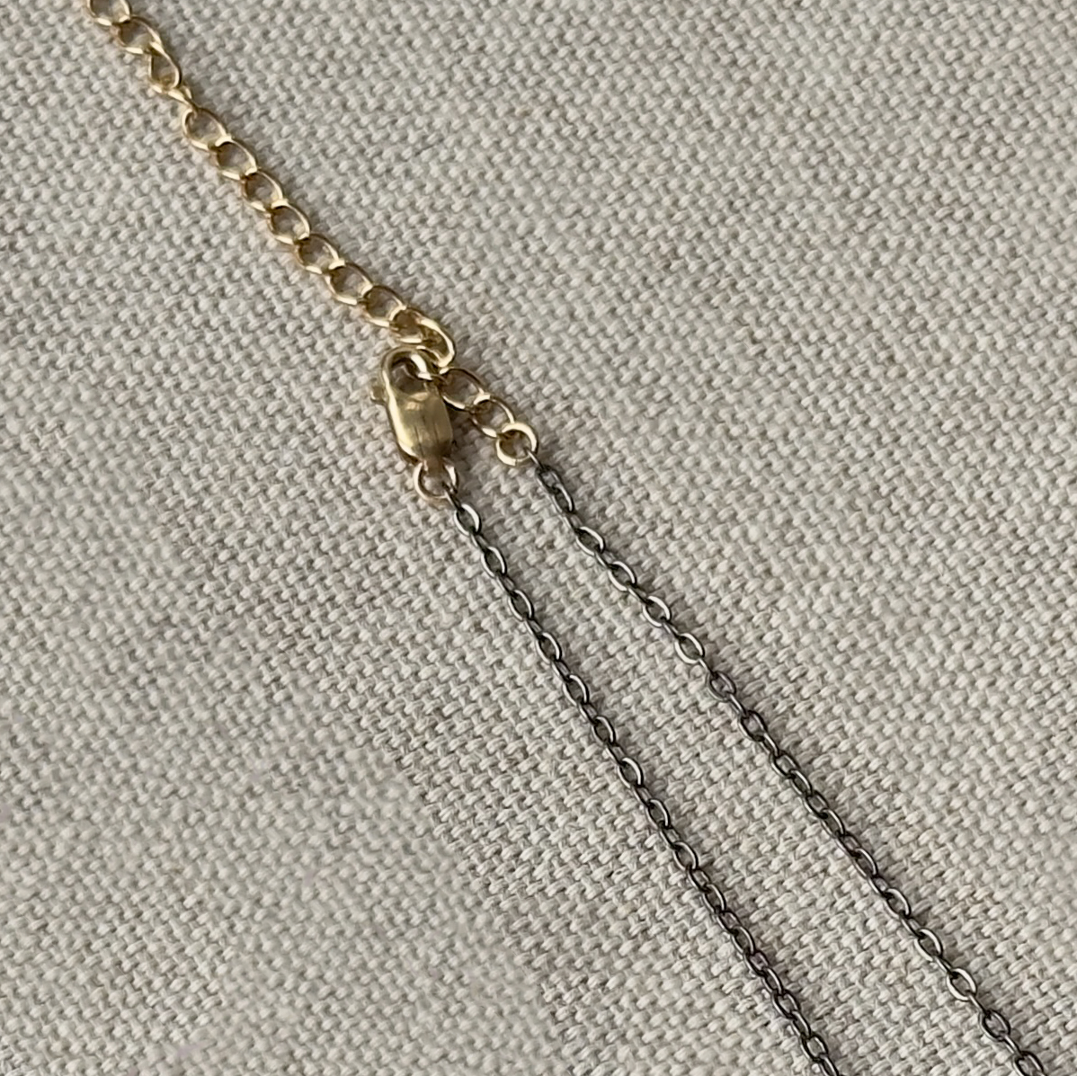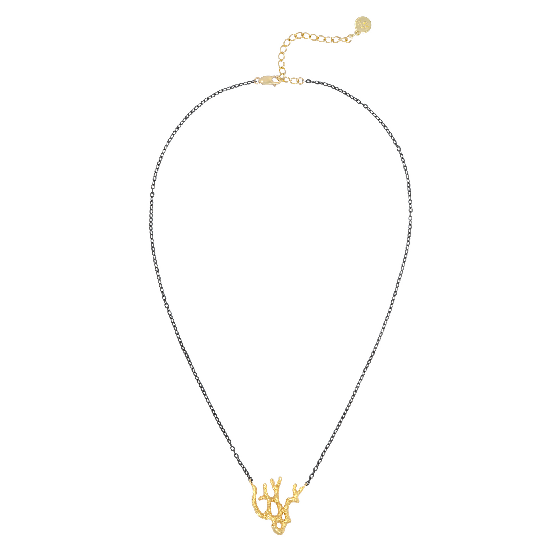 - Materials: Gold plated brass coral pendant, gunmetal cable chain, gold filled and gold plated components