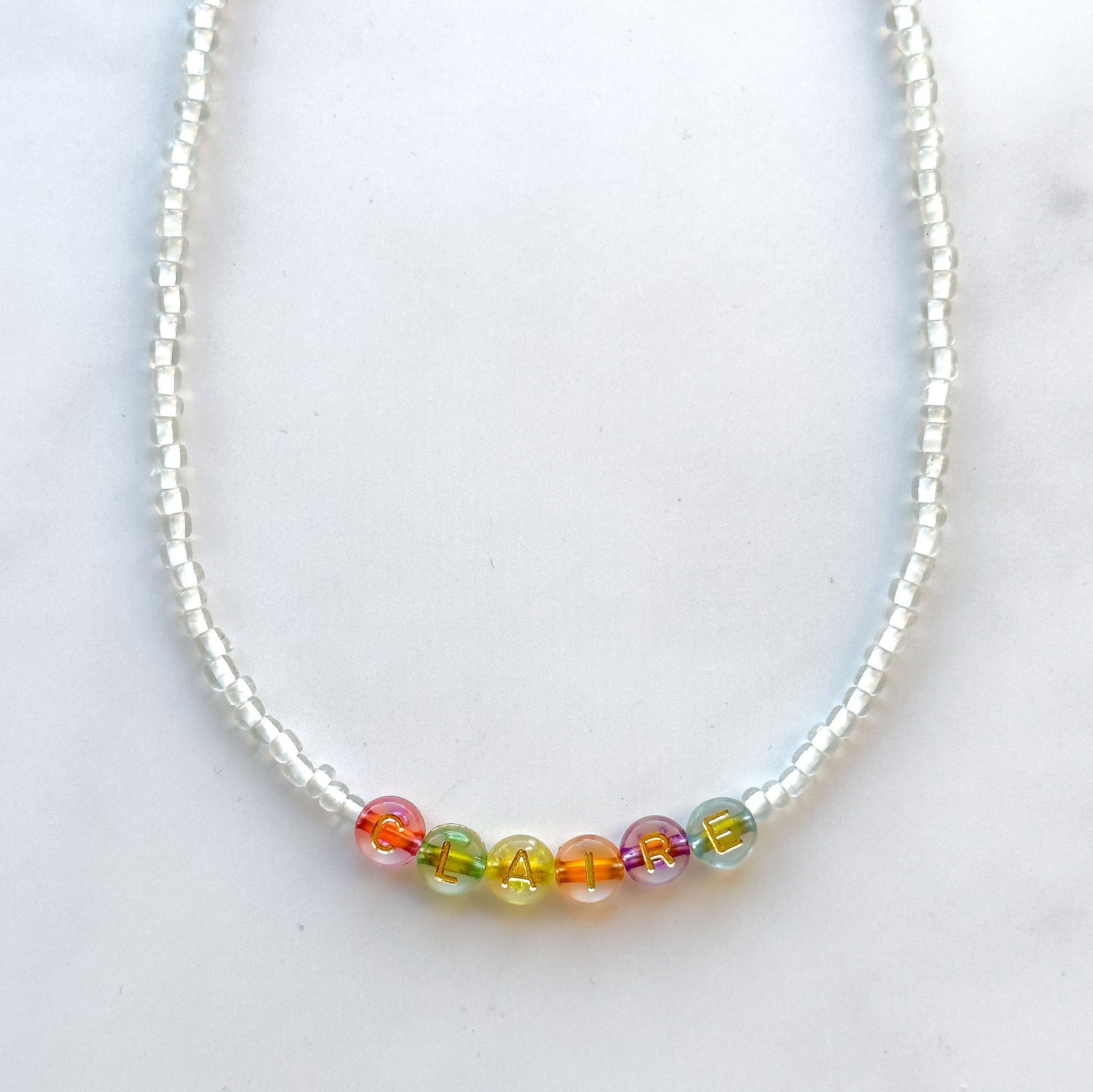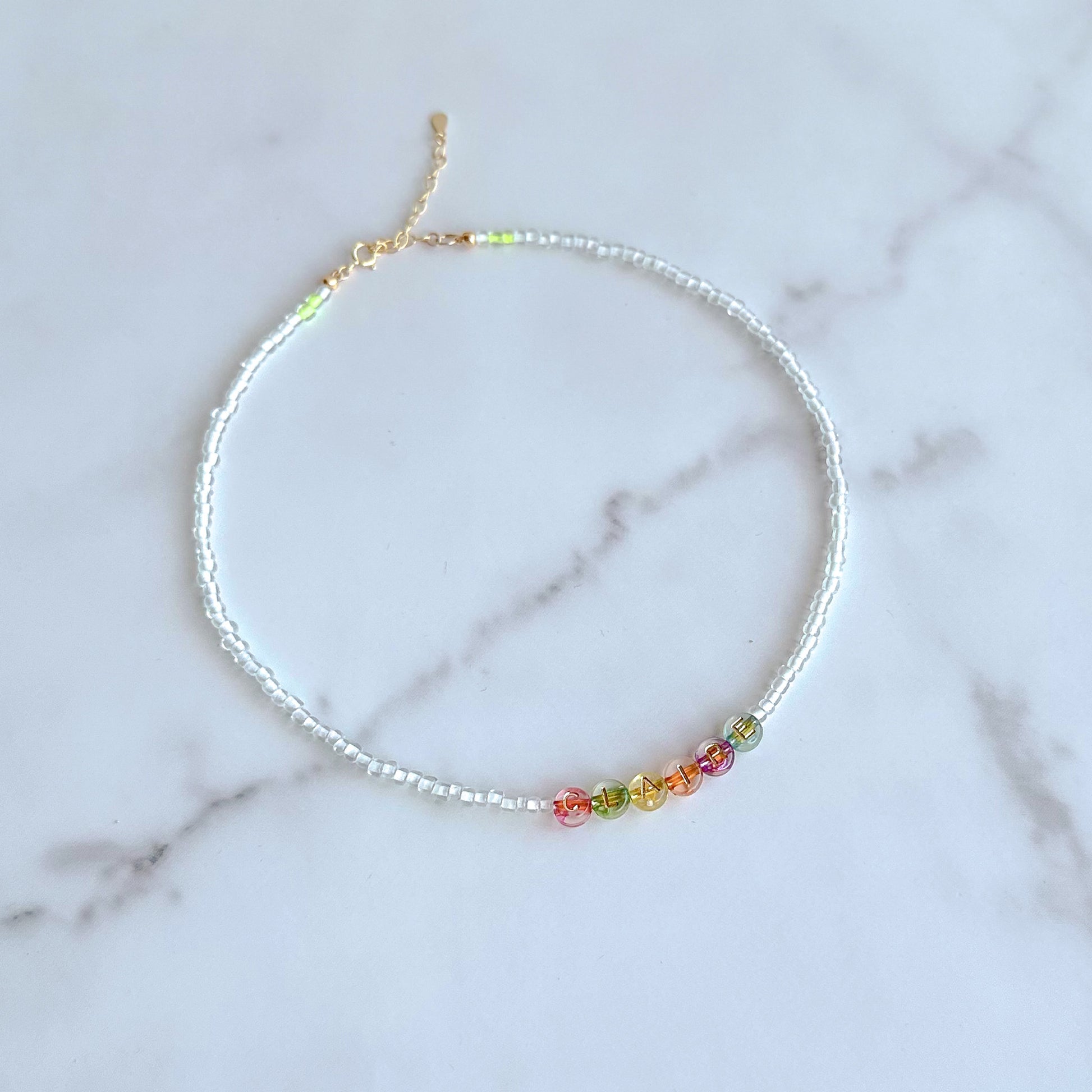 - Handmade necklace made of glass seed beads and colorful letter beads to personalize with your name (please indicate the name in the "order special instructions" section of shopping cart)