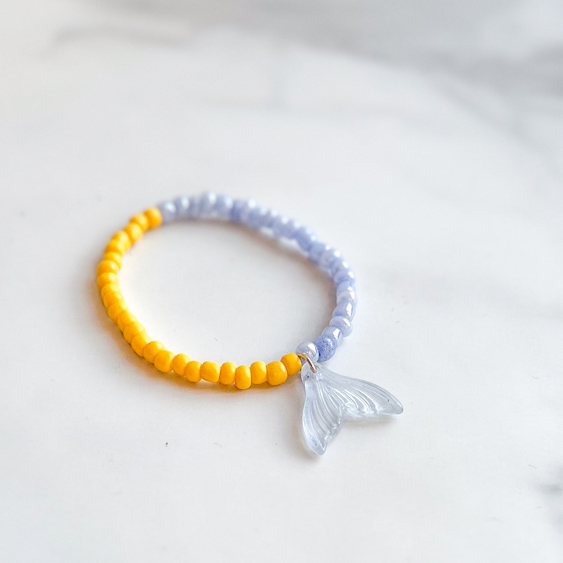 - Handmade glass seed beaded stretch bracelet, accented with a glass mermaid tail charm
