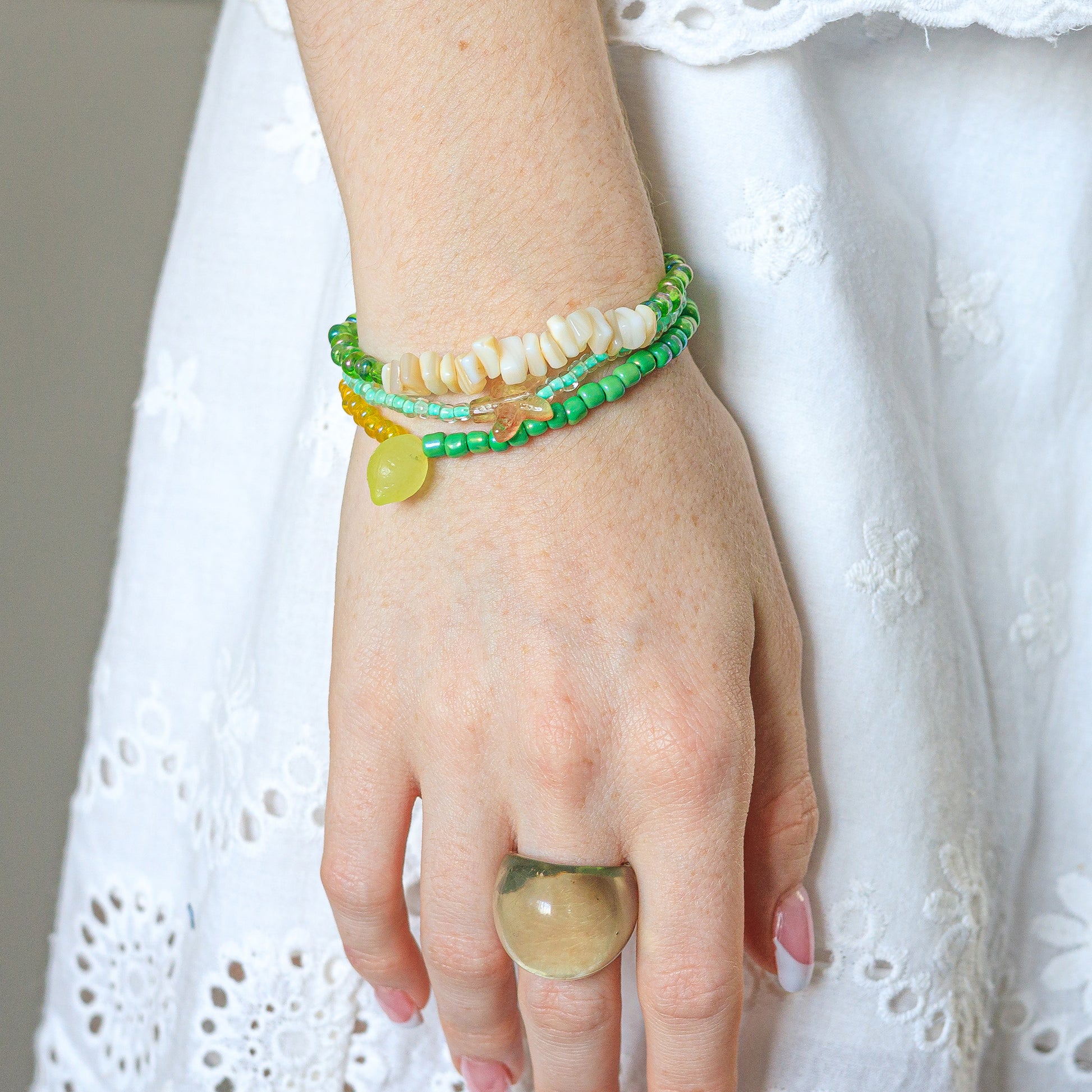 - Handmade glass seed beaded stretch bracelet, accented with an ombre glass starfish charm