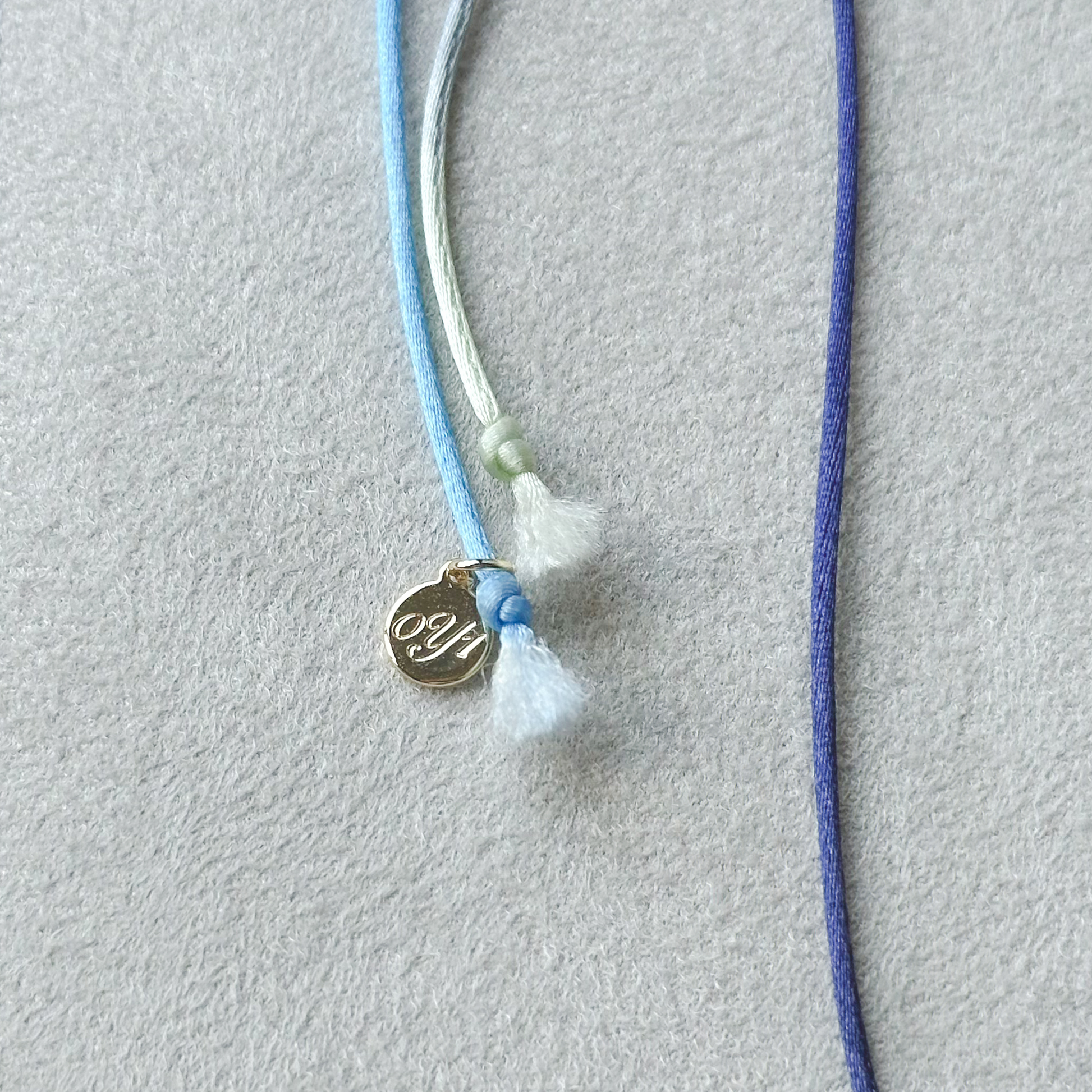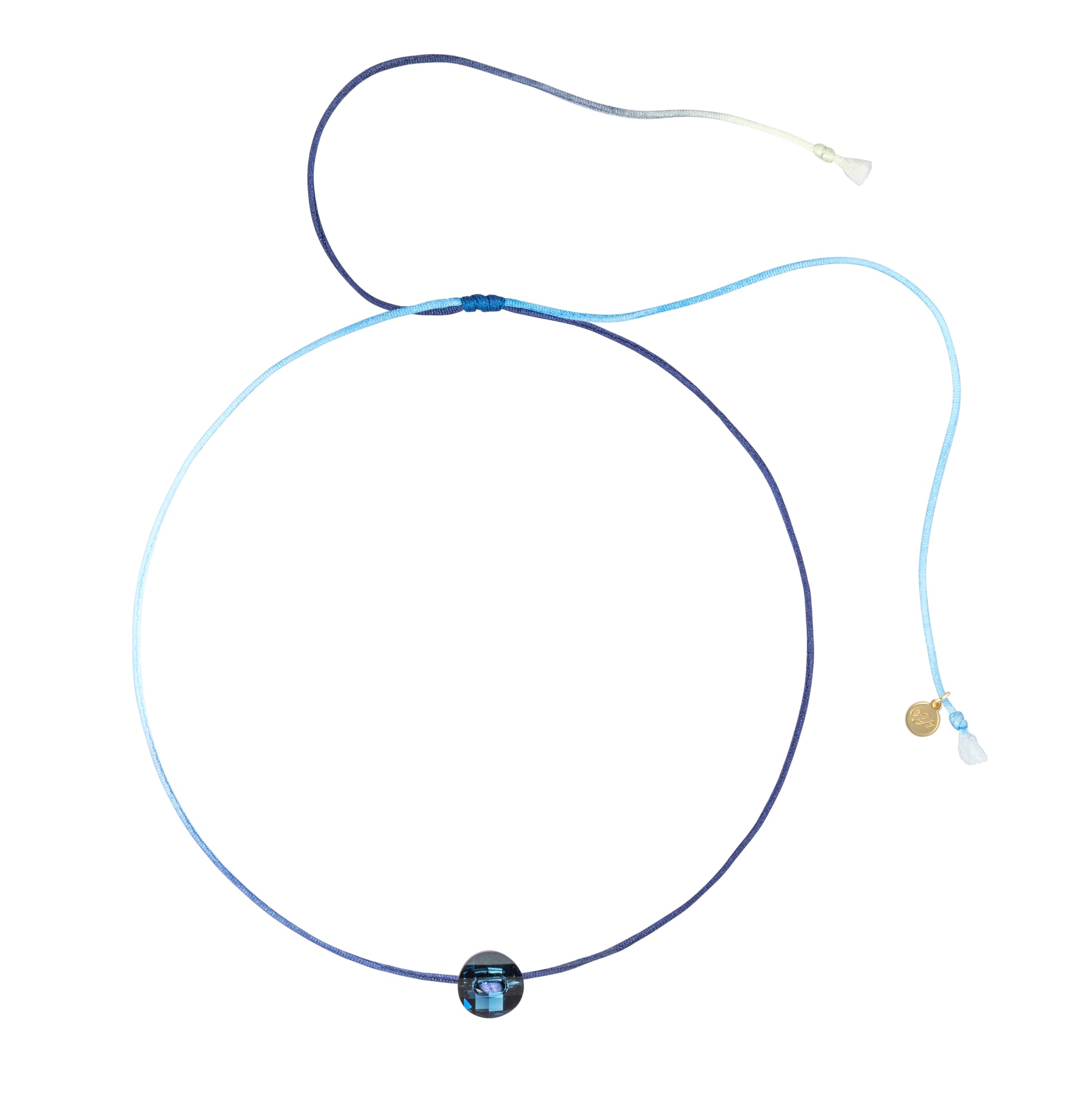 - Materials: Vintage Swarovski crystal button, ombre satin nylon cord, waxed polyester cord, gold plated component