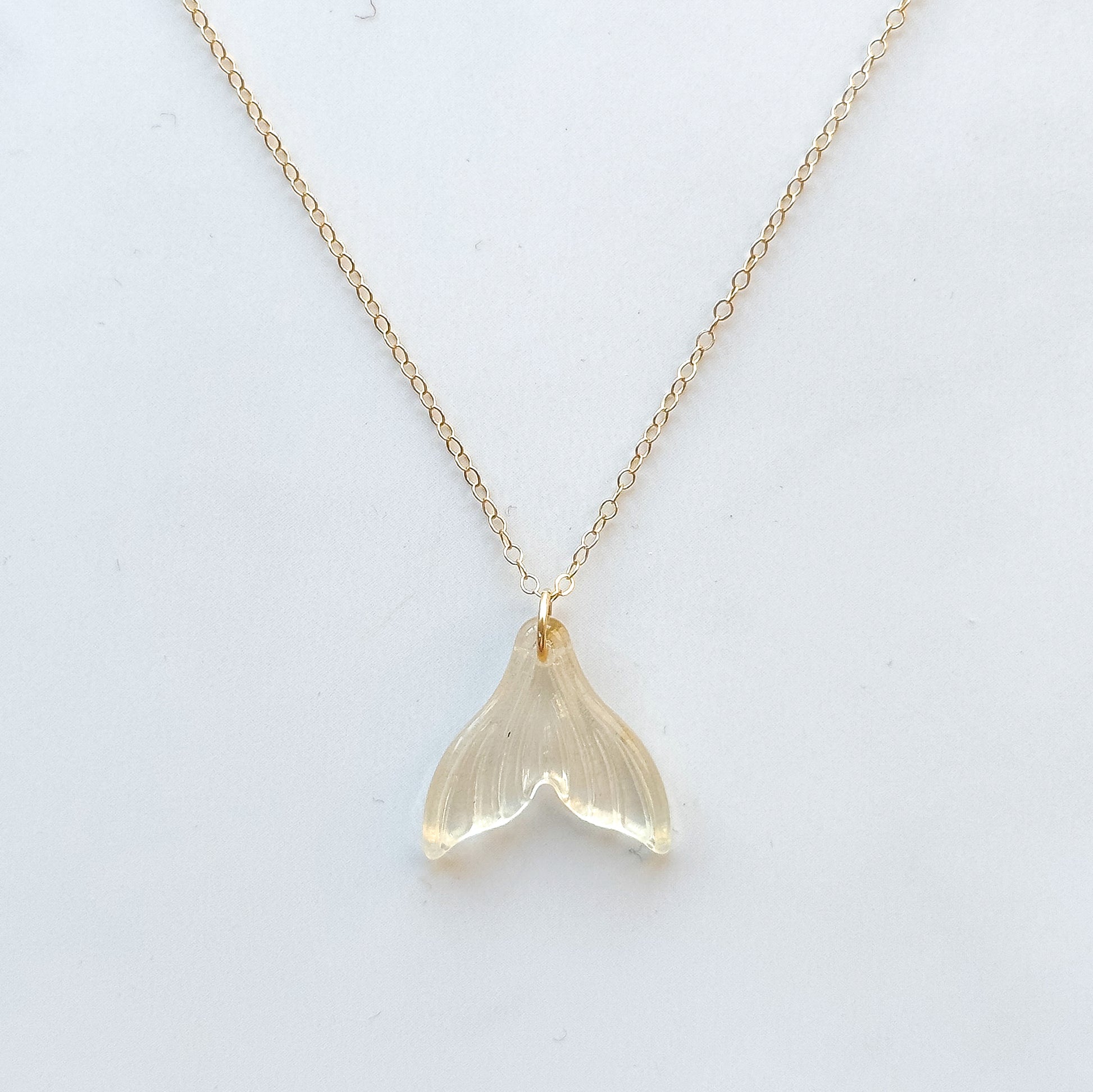 - Gold-filled cable chain necklace with an aurora glass mermaid tail charm