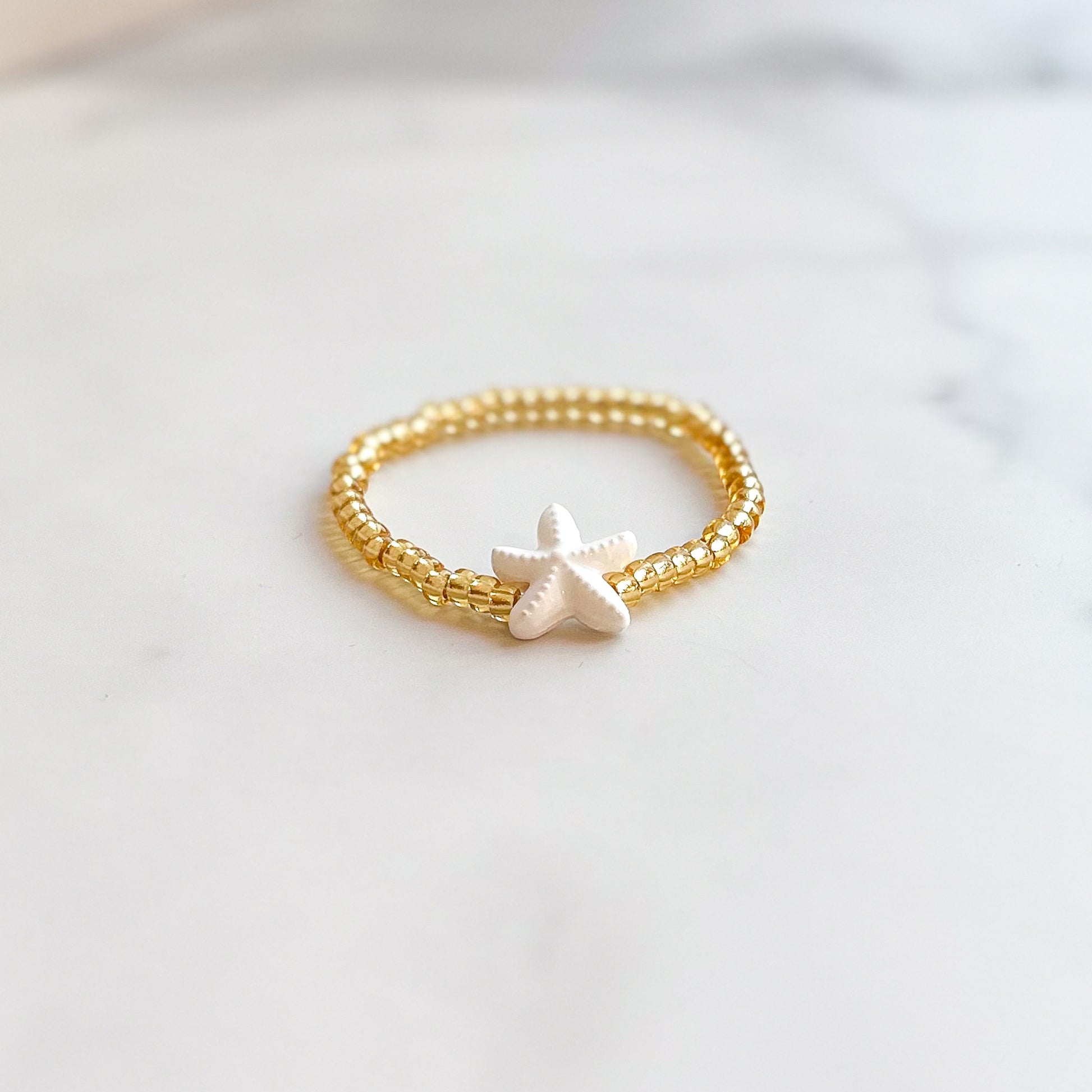- Handmade Miyuki glass beaded stretch bracelet, accented with a ceramic starfish charm